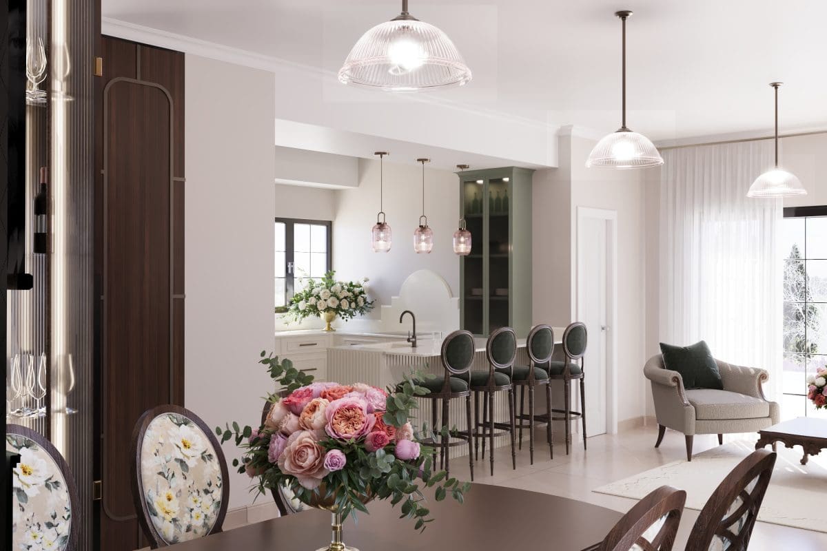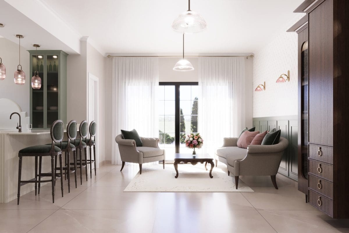 הדמיות חלל מרכזי בסגנון פרובנס לדירת גן