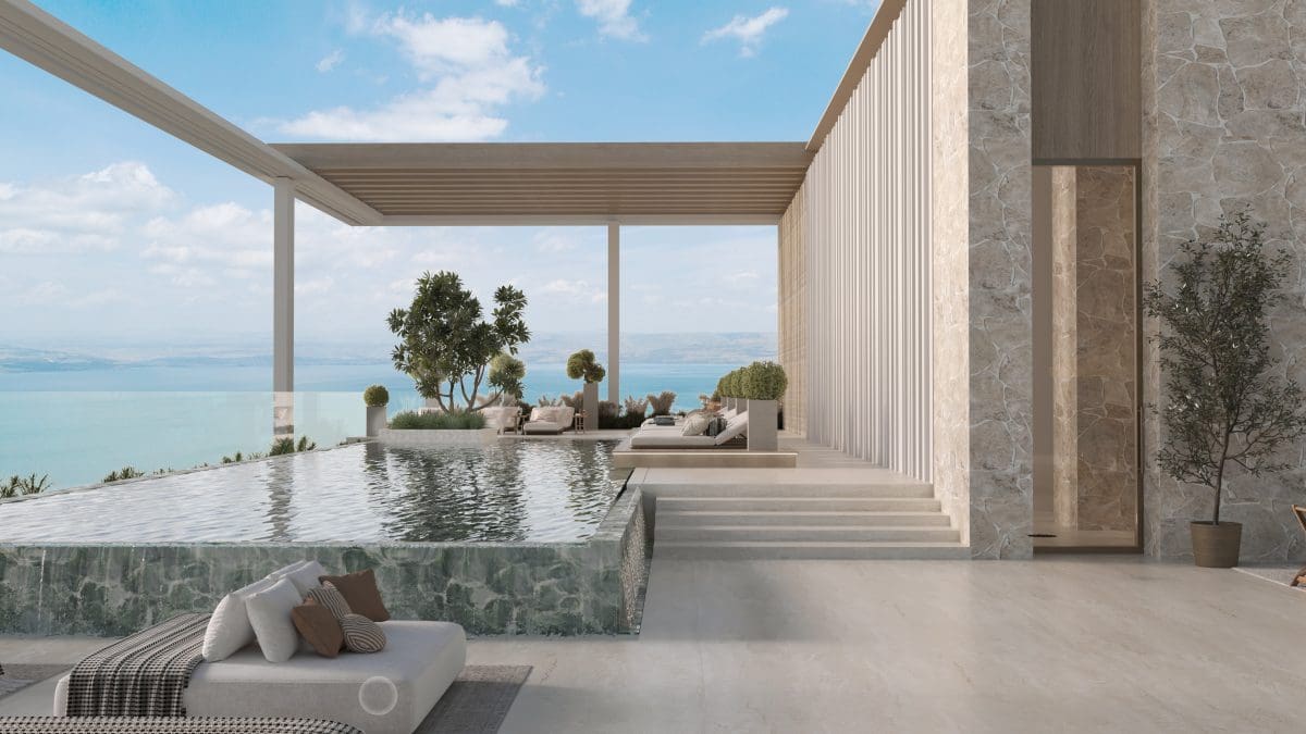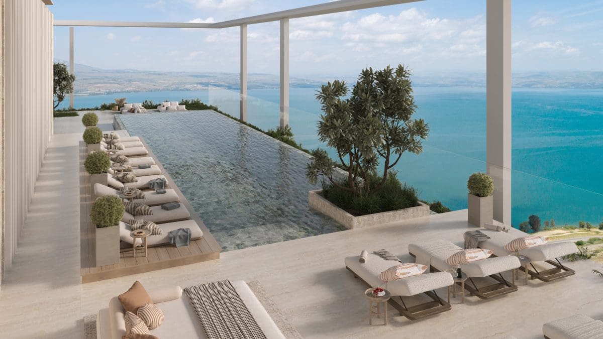 הדמיות מרפסת גג ולובי למלון חדש בטבריה מול הים